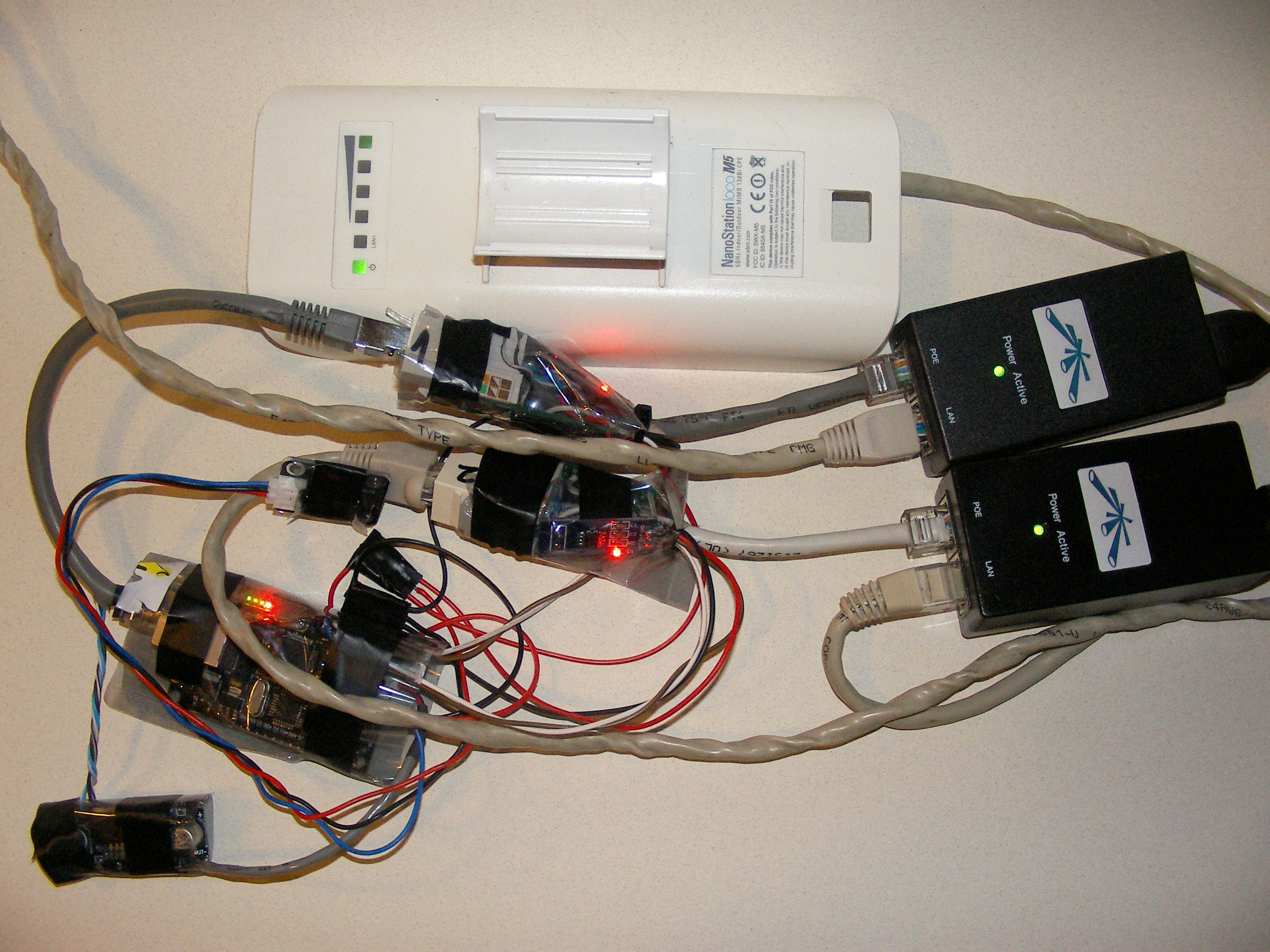 Power meter in action measuring the power consumption of a NanoStation and the xboard itself